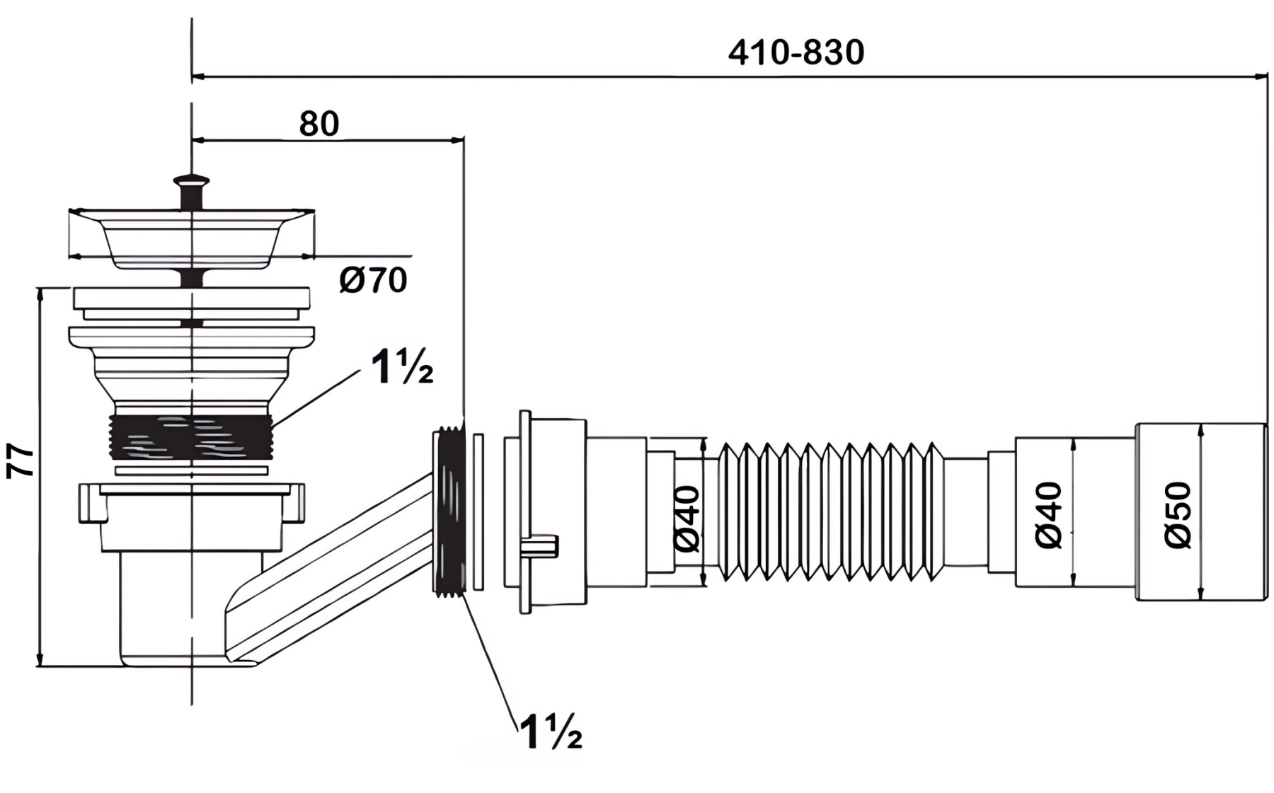 Сифон Bettoserb 125340 для поддона/раковины на слив 50-60мм купить