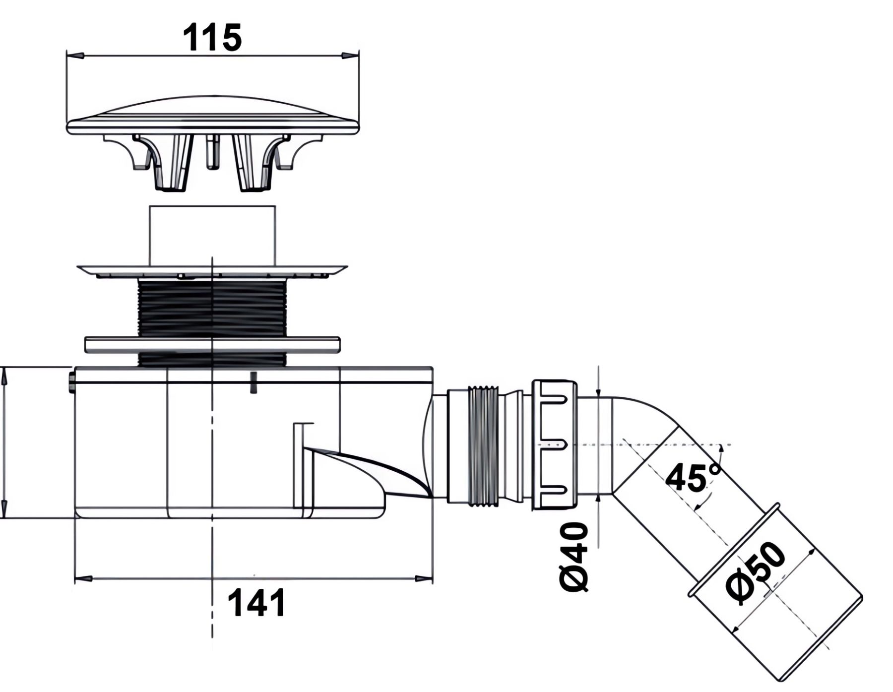 Сифон для поддона BETTOSERB 90 мм – надежная защита и удобство обслуживания Описание:Компактный и функциональный сифон для душевых поддонов с диаметром слива 90 мм. Обеспечивает эффективный водоотвод и надежную защиту от засоров благодаря встроенному стакану для сбора волос и грязи. Ключевые преимущества:? Грязеулавливающий фильтр – задерживает волосы и мусор, предотвращая засоры? Простое обслуживание – стакан легко извлекается для быстрой очистки? Надежный гидрозатвор – эффективно блокирует канализационные запахи? Стильный дизайн – хромированная декоративная крышка (?115 мм) дополняет интерьер? Универсальное подключение – совместим с трубами 40/50 мм; низкая монтажная высота - всего 56мм! Технические характеристики:? Пропускная способность: до 40 л/мин? Габариты: 170?115?56 мм? Монтажная высота: 56 мм? Материал: ударопрочный пластик, хромированная АБС-крышка Особенности конструкции: - Встроенный стакан для сбора мусора - Гидрозатвор для защиты от запахов - Простая система монтажа - Эргономичный дизайн Комплектация: - Основной корпус сифона - Грязеулавливающий стакан - Декоративная хромированная крышка - Все необходимые элементы для подключения Идеальное решение для душевых кабин и поддонов – сочетает функциональность, простоту обслуживания и современный дизайн!