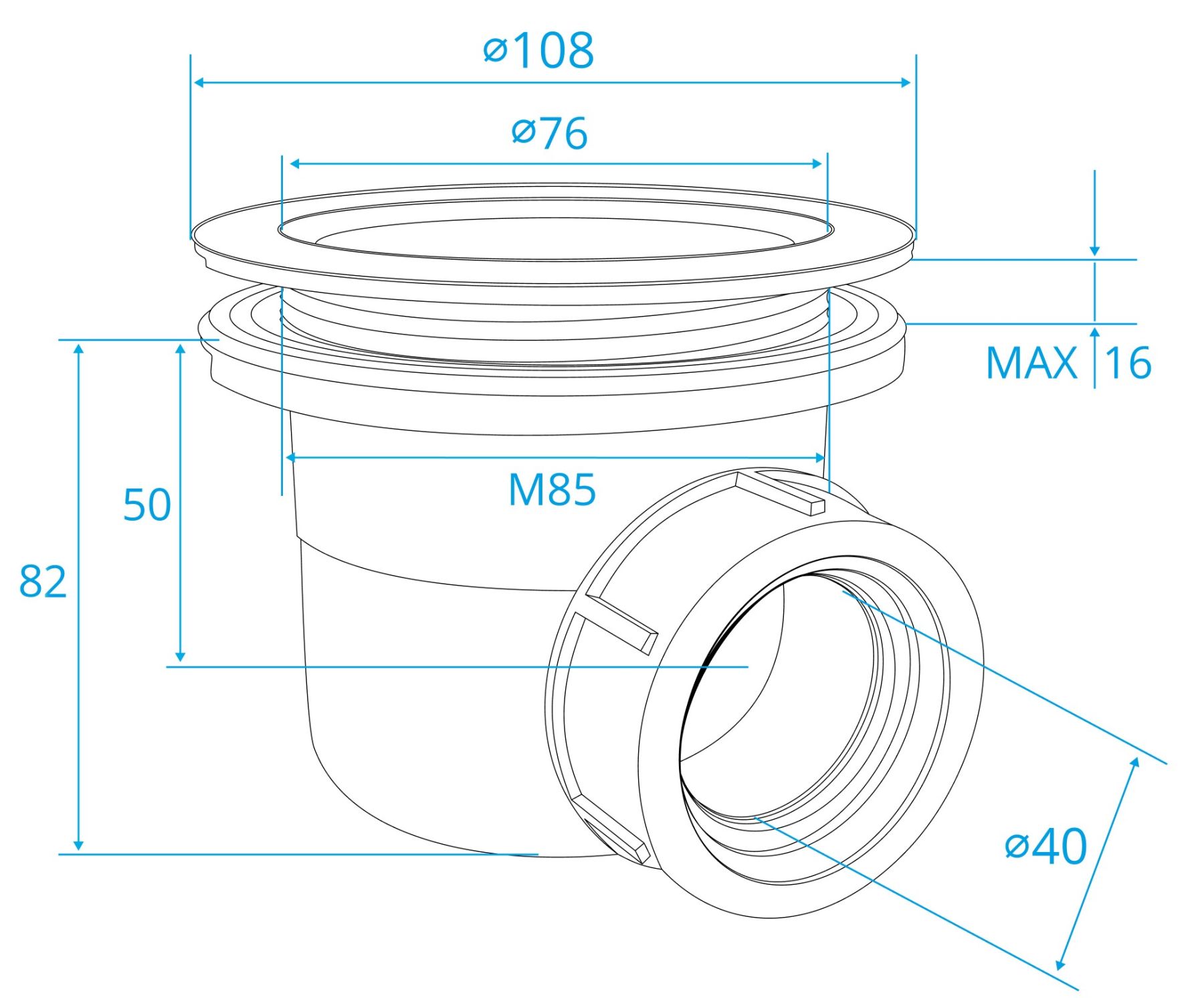 Сифон RGW S-010 для душевых поддонов с решеткой из нержавеющей стали