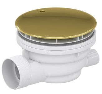 Сифон Velplex QYD-01 со съемным гидрозатвором для душевых поддонов. Верхняя крышка сифона золотого цвета.