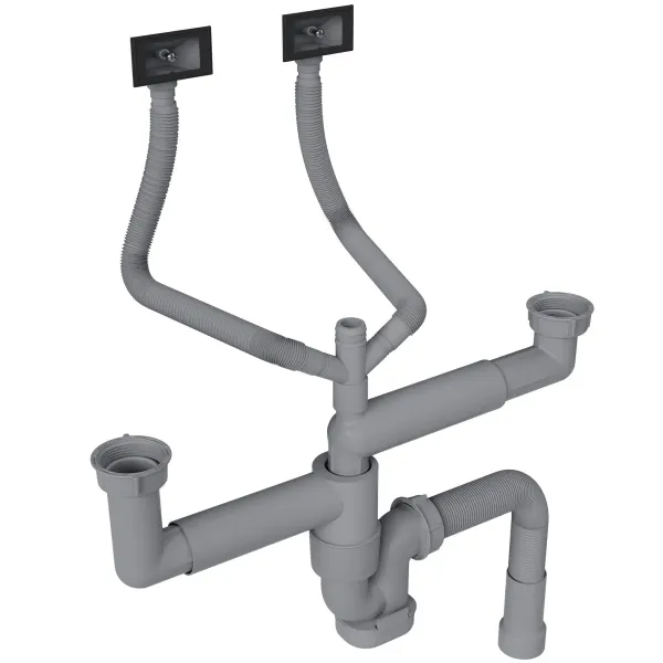 Сифон для двучашевой кухонной мойки БЕЗ ВЫПУСКА Reflexion Part RX9002PT