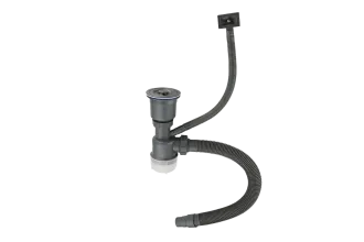 GF-01 PVD графи   Сифон одинарный  для мойки из нерж. стали, с переливом и корзинкой для мусора PVD графит