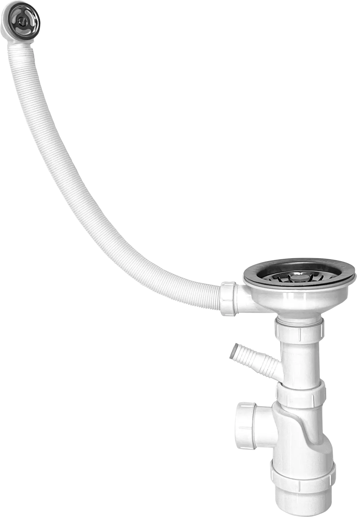 Сифон одинарный Санпласт  3 1/2" с круглым переливом, отводом и винтом.  Сифон для кухонных моек с диаметром сливного отверстия 90мм, бутылочного типа. С разборным выпуском и нержавеющей решеткой, с круглым переливом для композитных моек. Выход для подключения к канализации 40мм Комплектация: Круглый перелив Размер: 3 1/2х40 Цвет: Белый Материал: Металл, пластик