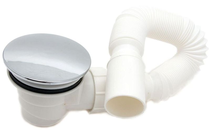 Сифон для низкого поддона с гофрой.Материал: пластик.Система забора волос и другого мусора.Боковой выпуск.Вид затвора: с мокрым гидрозатвором.Для слива диаметром: 6 см.Диаметр подключения: 4 см.Высота: 9 см.Длина с гофрой: 42 см.