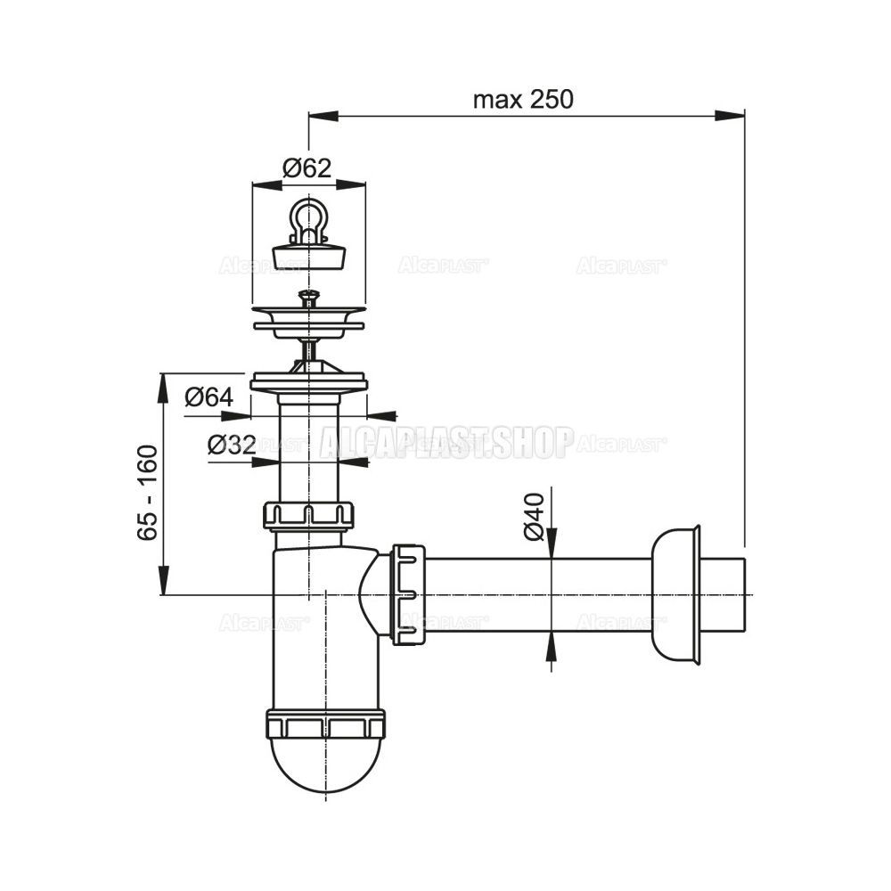 Сифон для раковины AlcaPlast ?40 с нержавеющей решеткой ?63 без штуцера A41 купить