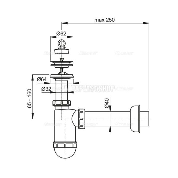 Сифон для раковины AlcaPlast ?40 с нержавеющей решеткой ?63 без штуцера A41
