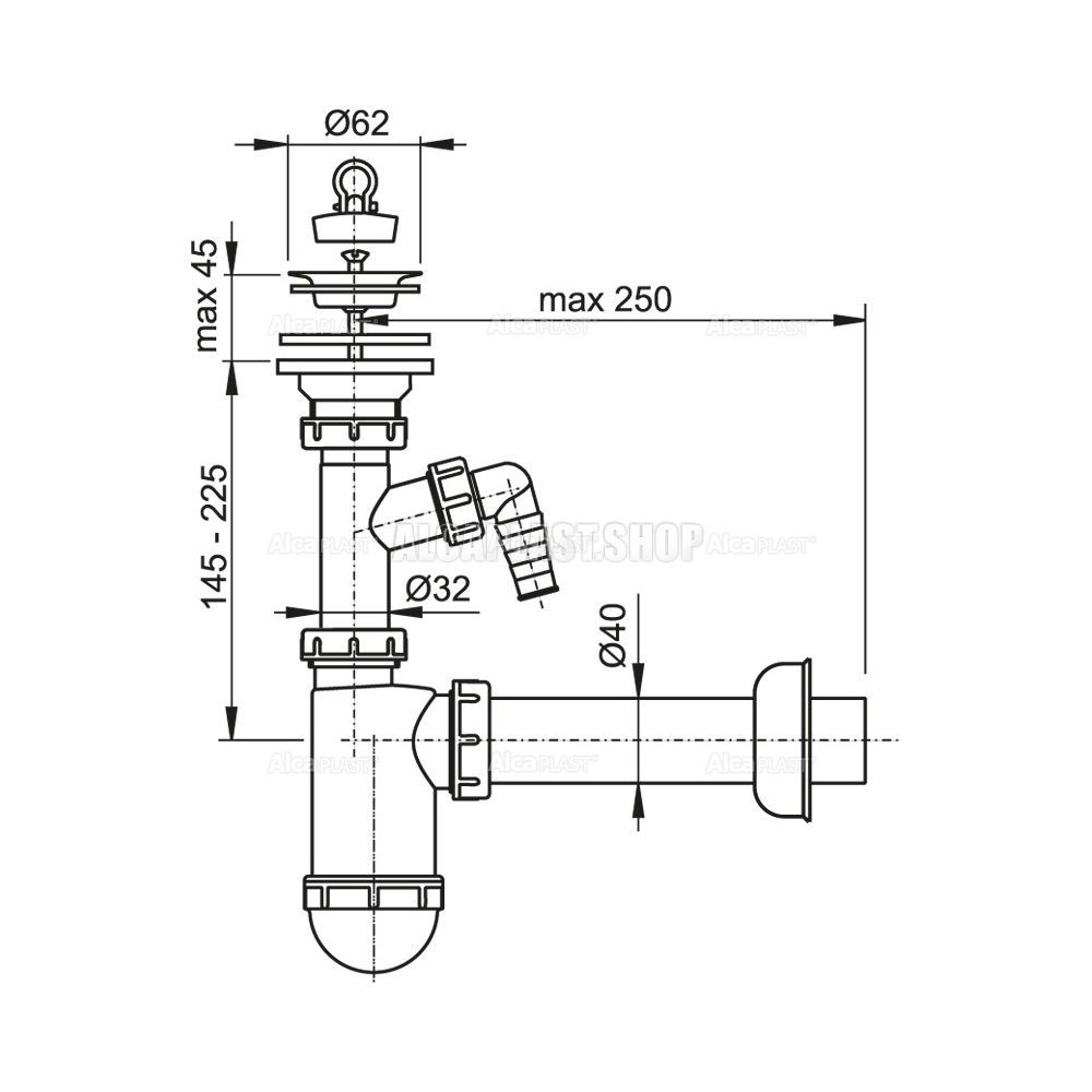 Сифон для раковины AlcaPlast ?40 с нержавеющей решеткой ?63 и подводкой A41P купить