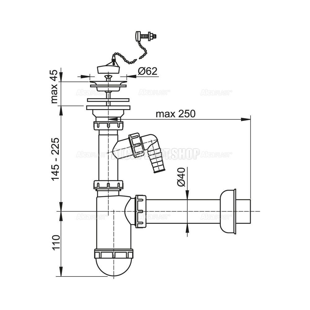 Сифон для раковины AlcaPlast ?40 с нержавеющей решеткой ?63 с цепочкой и подводкой A41PR купить