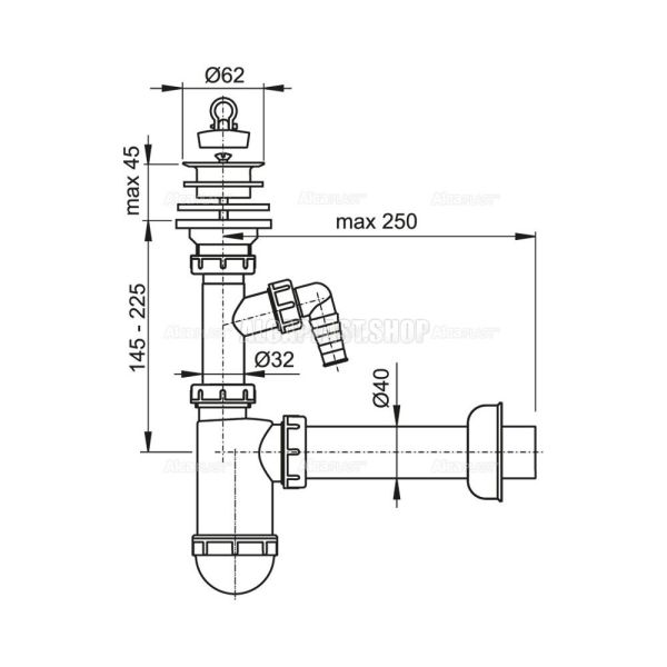 Сифон для раковины AlcaPlast ?40 с пластмассовой решеткой ?63 и подводкой A42P купить