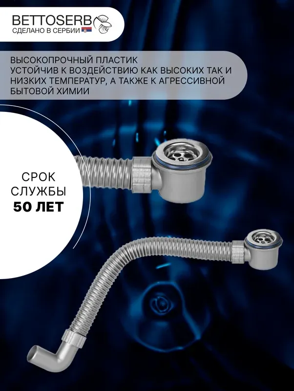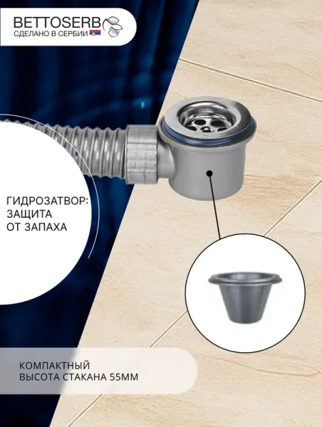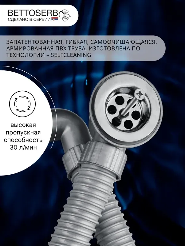 Компактный сифон BETTOSERB 1.1/2"×40 мм с самоочищающейся гофротрубой – надежность и... Подробнее