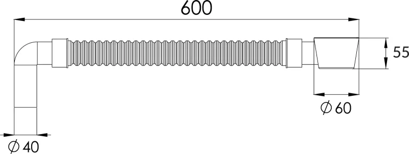 ✔ Длинная труба 60 см – обеспечивает удобное подключение к канализации