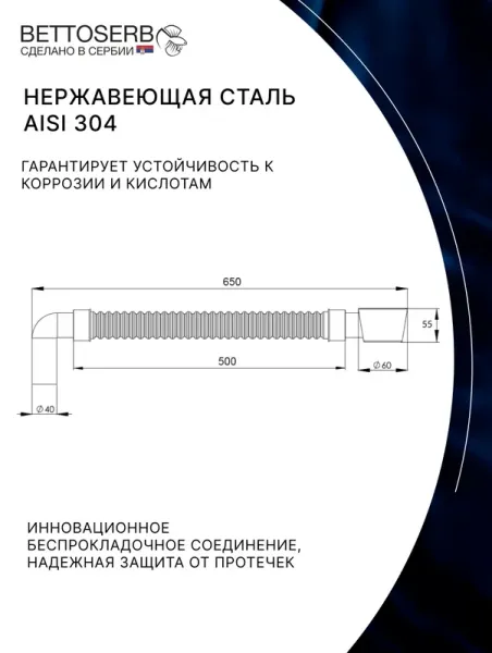 Компактный сифон BETTOSERB 1.1/2"×40 мм с самоочищающейся гофротрубой – надежность и удобство в каждом сантиметре