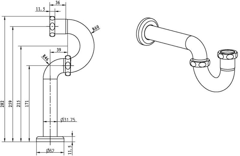 Трубный сифон предполагает изогнутую форму трубы, нижнее колено снимается для очистки