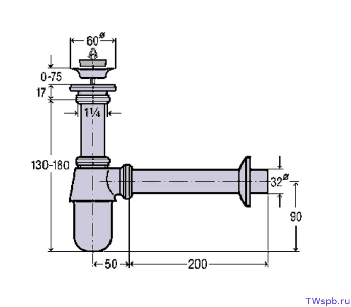 • Компактный монтаж, потому что сливной отвод прикручивается к сливу напрямую без регулировочной трубы