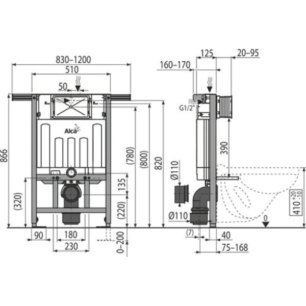 • Для установки подвесного унитаза с интервалом крепления 180 мм или 230 мм