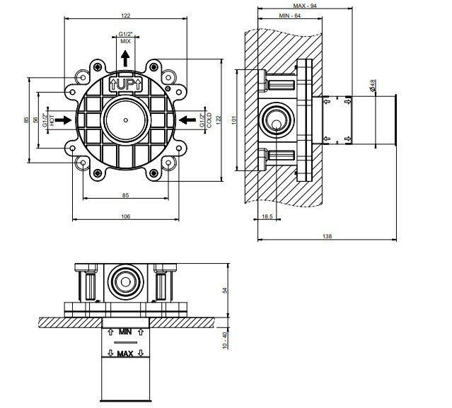 Скрытая часть настенного однорычажного смесителя Gessi 63412.239