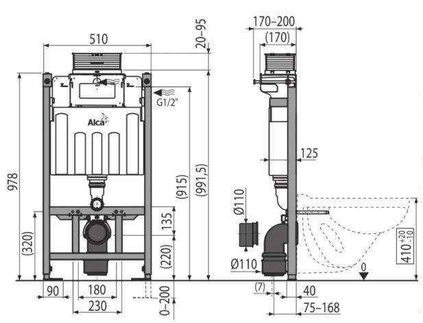 Скрытая система инсталляции AlcaPlast для сухой установки (для гипсокартона) Sadroмodul AM118/1000 купить