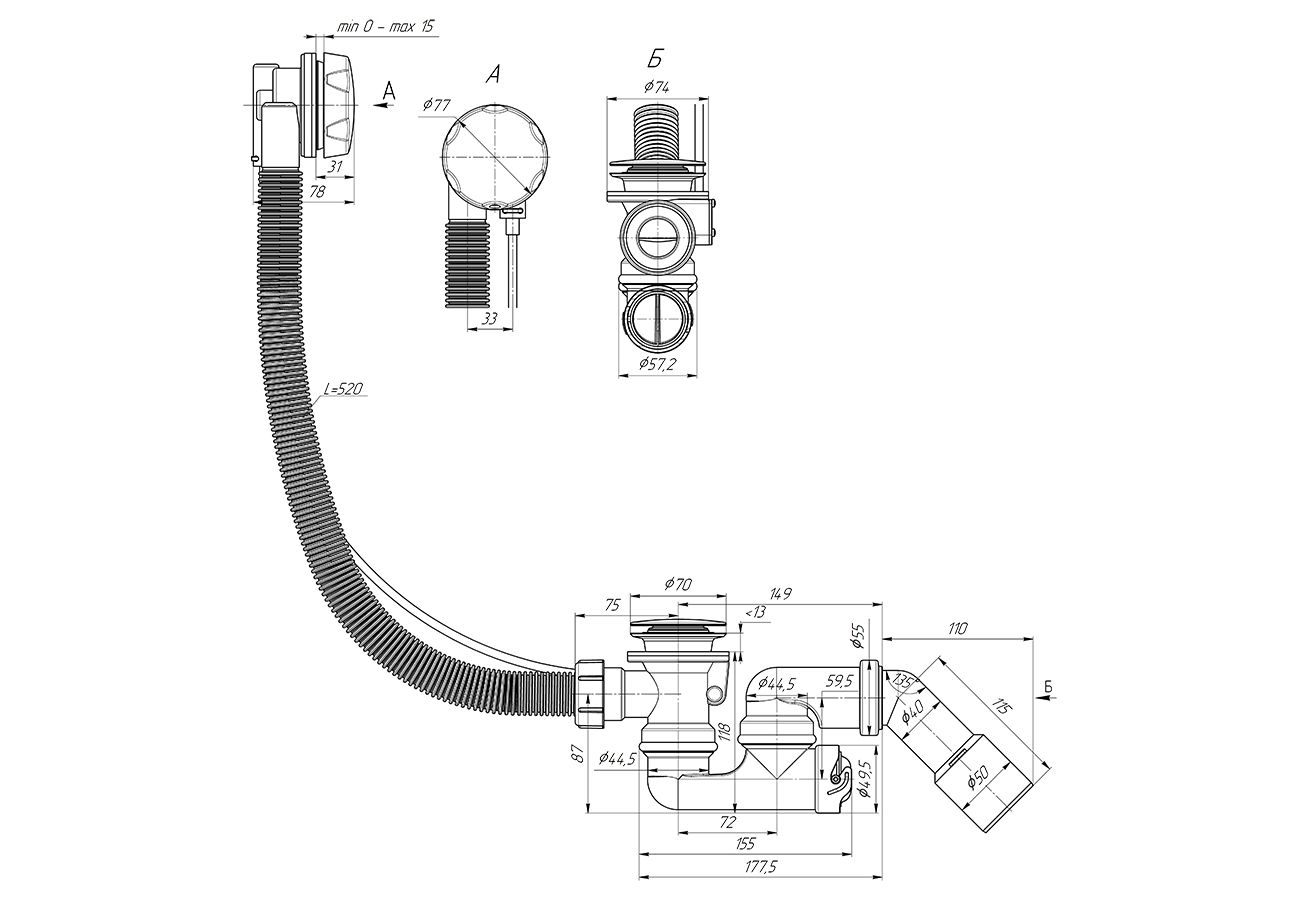 • Можно адаптировать под слив 40 и 50 мм
