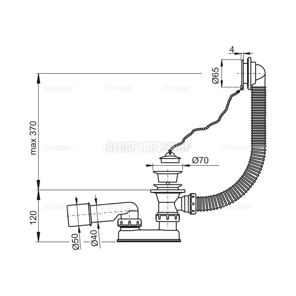 • Для ванн с выпускным отверстием Ø52 мм