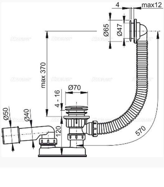 Слив-перелив для ванны AlcaPlast клик-клак 57см хромированный пластик A505CRM купить