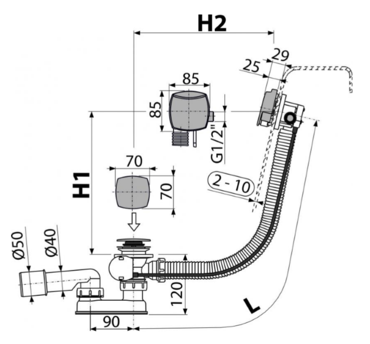 - Для слива воды из ванны в канализационный сток