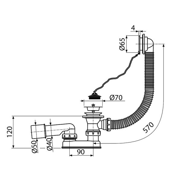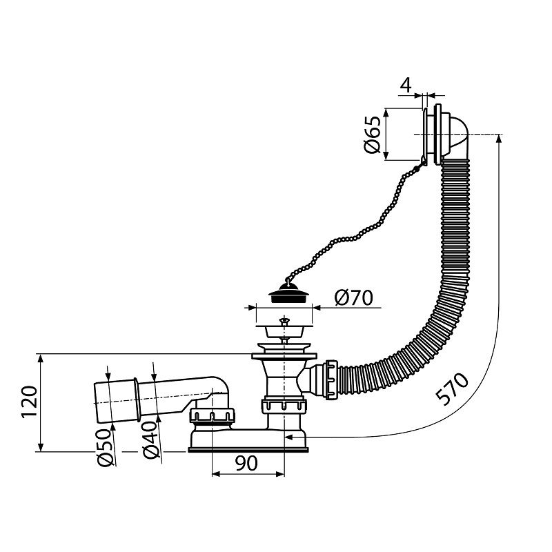 Слив-перелив Koller Pool для ванны, цепочка с пробкой, 57 см, хром, B70CPPBСлив-перелив для ванны;
