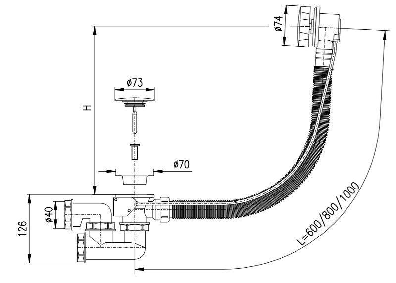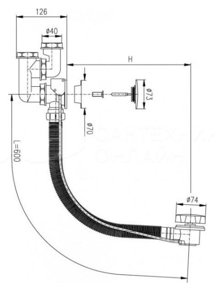 Гидрозатвор с вращающимся коленом Ø40 мм.