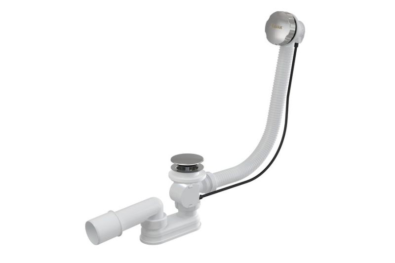 Вы можете выбрать сточный комплект для ванны с переливом длиной 570 мм или 800 мм с управлением сливом при помощи тросика или механизмом ClickClack. В состав каждого сточного комплекта входит сифон.