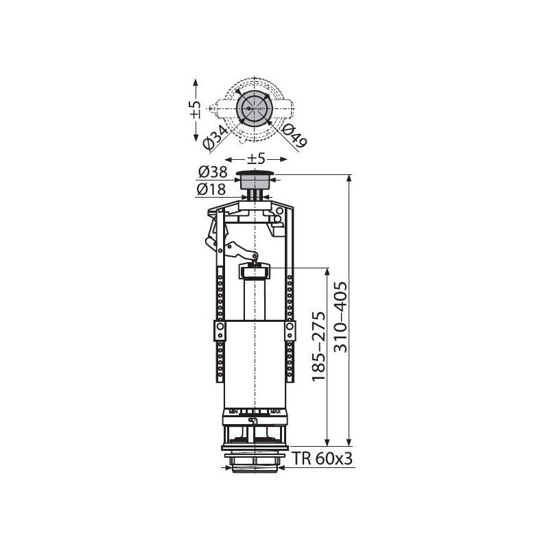 - Конструкция позволяет регулировать высоту механизма в зависимости от высоты бачка