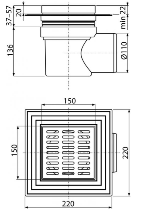 -Боковое подключение к канализационному стоку Ø110 мм