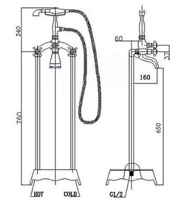 Смеситель Gemy G8245 для ванны напольный с душемФиксированный излив без аэратора, трубки 90 см (хром), без шлангов.