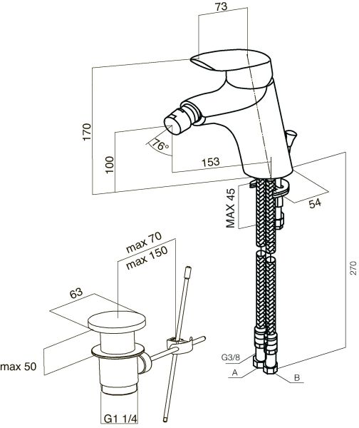 Смеситель Am.pm Bliss L F5383164 для биде с д/к