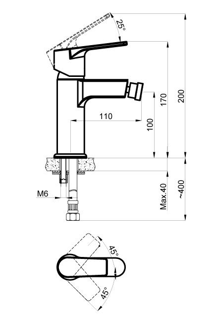 • Высота смесителя: