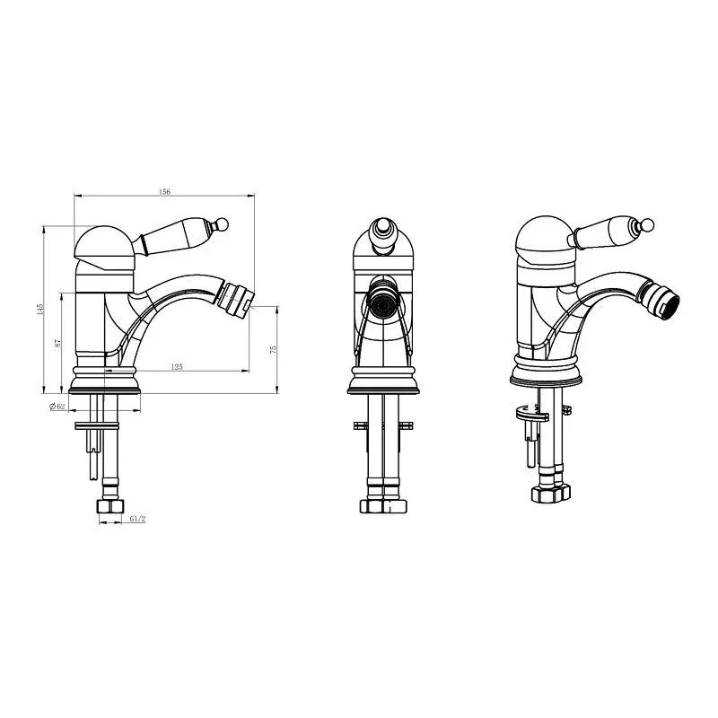Смеситель для биде Boheme Tradizionale 266-BLC, цвет хром ручка керамика черная