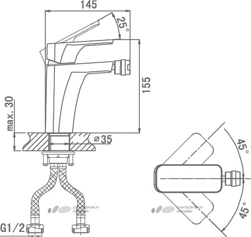 • Высота смесителя: