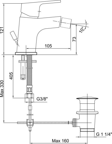 • Высота смесителя: