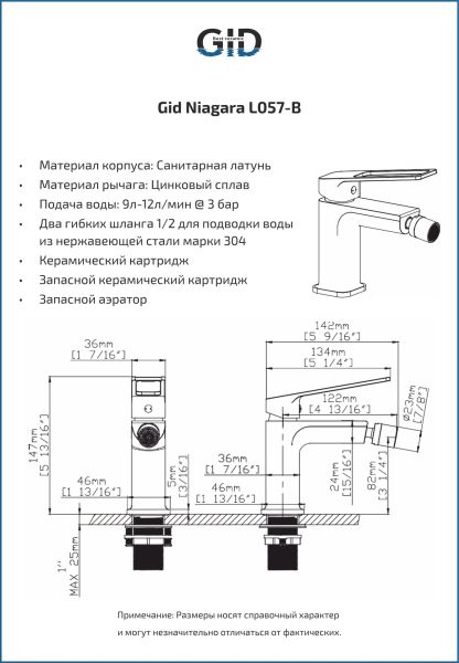 Смеситель для биде Gid Niagara L057-CH-B L057CHB хром