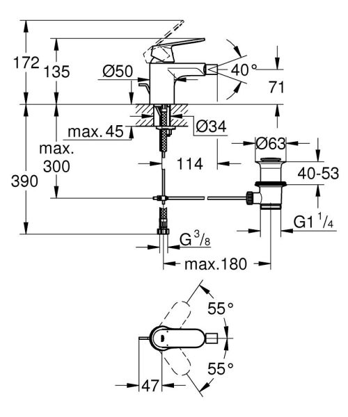 Смеситель для биде Grohe Eurosmart Cosmopolitan 32839000 хромМонтаж на одно отверстие