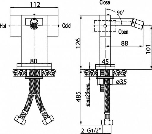 Рабочий интервал давления в водопроводной сети: 0,5-6,0 Атм