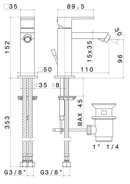 Смеситель однорычажный для биде с донным клапаном 1"1/4. Соединение 3/8". Внимание: для чистки черных и цветных изделий можно применять только мягкую губку и мыльный раствор. Использование моющих и абразивных средств запрещено.