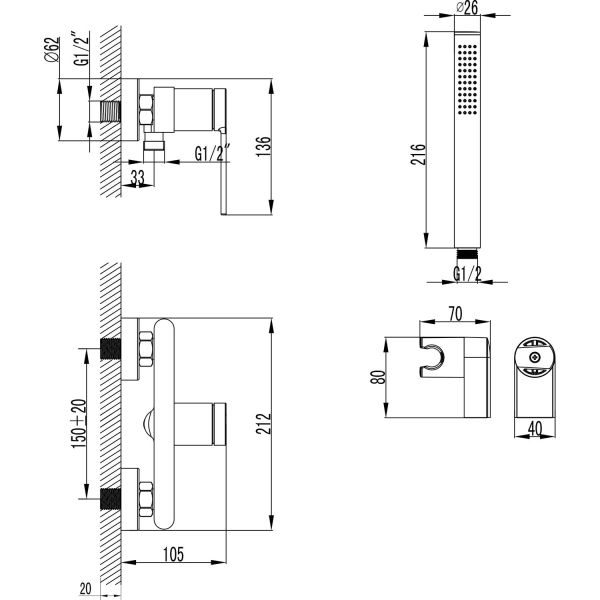 Смеситель для душа Azario VINCENTE AZ-VRZ338326AJ