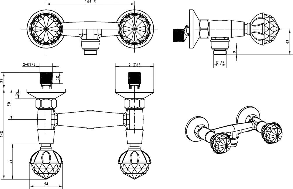 Смеситель Boheme Brillante Presente 354 для душа важнейший предмет сантехники в любой ванной комнате. На душевую безупречно впишется смеситель Boheme Brillante. Двухвентильные смесители – это классическая модель, внутри которой установлены две кран-буксы.Латунь, кристаллы Swarovski из которой произведен смеситель Boheme Brillante 345 отличается высокой прочностью и произведена без использования вредных компонентов. Конструкция модели Boheme Brillante позволяет бесподобно установить смеситель на стену. Смеситель для душа Boheme 345 выполнен в стиле ретро, что великолепно прослеживается в его форме. Марка Boheme, родиной которой, является Италия, создает смесители качества с высокотехнологичного оборудования, благодаря чему смесители отличаются долговечностью и надежностью. Смеситель Boheme Brillante Presente 354 для душа принесет комфорт, как в компактную ванную комнату, так и в большой санузел.