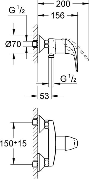 Дизайну однорычажного смесителя для душа из серии Grohe Euroeco присуще сочетание граненых и округлых элементов. Устройство монтируется на стену и позволяет создать современный интерьер ванной комнаты. Корпус выполнен из латуни, устойчивой к воздействию коррозии, что является гарантией прочности и долговечности. Хромированное покрытие защищает корпус смесителя от агрессивного воздействия окружающей среды. Оно не царапается и не тускнеет со временем. Управление напором и температурой воды осуществляется плавным поворотом рычага с технологией GROHE SilkMove®.Отвод для душа снизу 1/2"