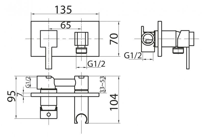 Оснащение: штуцер с держателем для душа