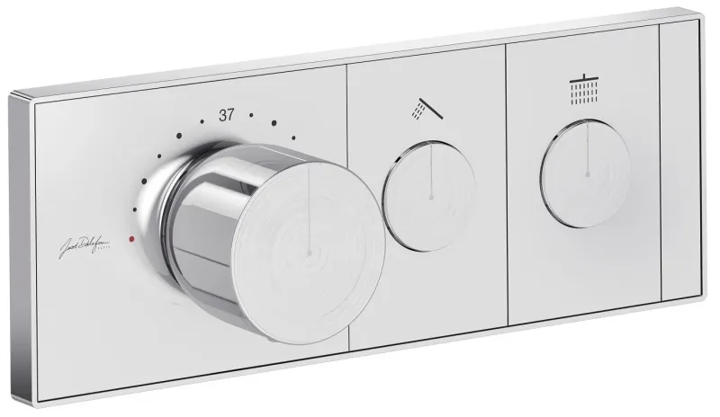 Grands boulevards - это современная элегантная коллекция для ванных комнат. Простая установка: установка с помощью компактной встраиваемой коробки E26340-NA (приобретается отдельно). Встраиваемый термостат, сочетающий современность и инновации с дизайном. Выбор используемого аксессуара упрощен благодаря принципу «1 кнопка – 1 функция». Всплывающая кнопка с накаткой, позволяющая регулировать поток. Регулировка температуры - большая кнопка позволяет легко регулировать поток даже мыльными руками.