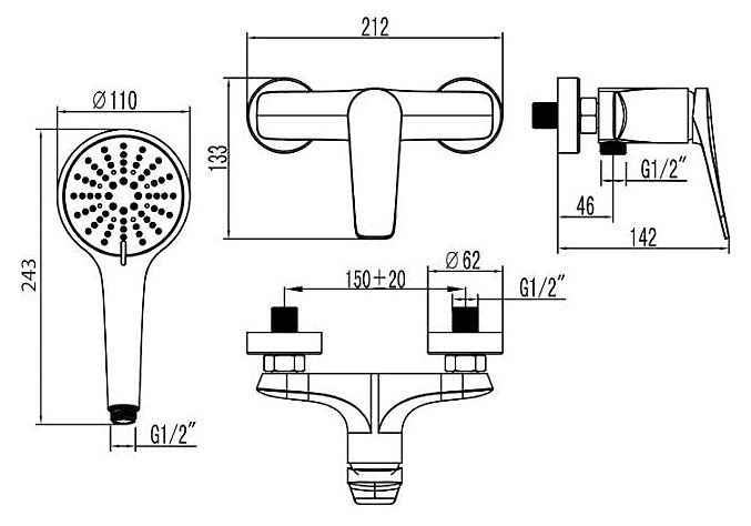 - Стандарт подводки: G 1/2"
