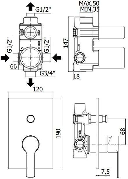 Смеситель встраиваемый для душа на 2 выхода с накладкой ABS 120х190мм.девиатор-кнопка, ХромСмеситель для душа Paffoni Red RED015CR/М (с внутренней частью) предназначен для душа. Своим сдержанным дизайном и колористикой он внесет в интерьер помещения стильный акцент, подчеркнув его своеобразие. Он изготовлен из надежного материала латунь/ABS, который не ржавеет, а потому прослужит верой и правдой. Изделие является прекрасным примером продуманной конструкции. Управление в смесителе предусмотрено однорычажное, что удобно для любителей такого типа смесителей. Высокую жизнеспособность и долговечность смесителю гарантирует керамический картридж, безусловным плюсом которого является выверенная конструкция - залог безупречной работы в течение длительного времени. Не напрасно гарантия на смеситель – 5 лет, в течение которого производитель Paffoni заверяет в его бесперебойной работе. Форма излива в смесителе - нет, а тип - нет. При покупке учтите, что подводка у смесителя жесткая, что необходимо знать для его установки.