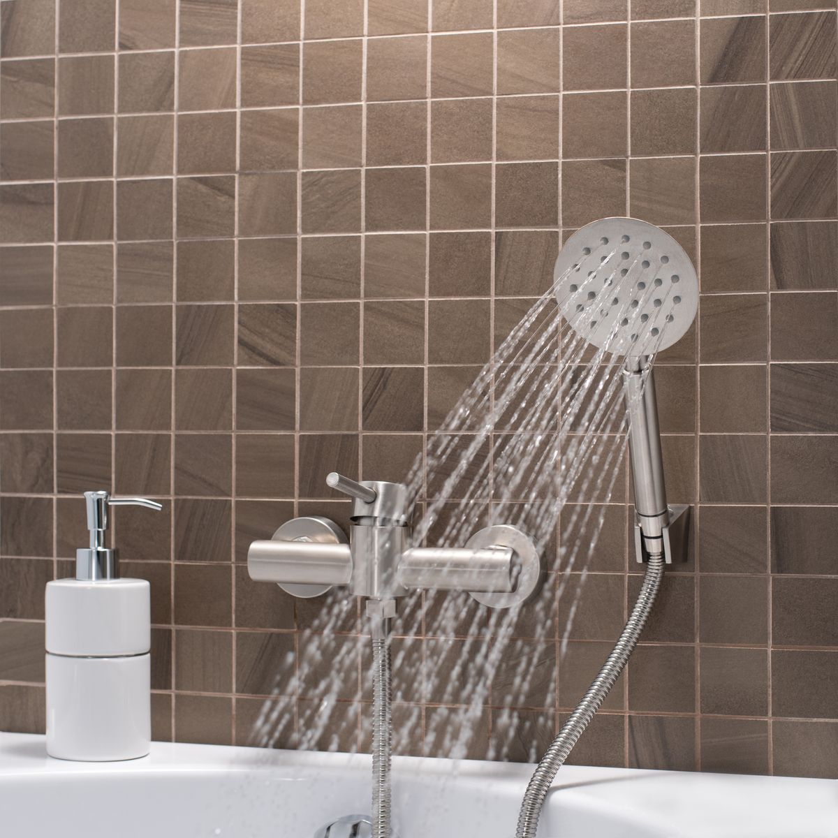 Стильный и современный однорычажный смеситель для душа из нержавеющей стали прекрасно дополнит ванную комнату и станет неотъемлемой частью интерьера.