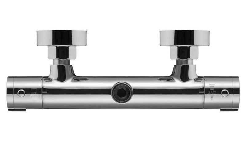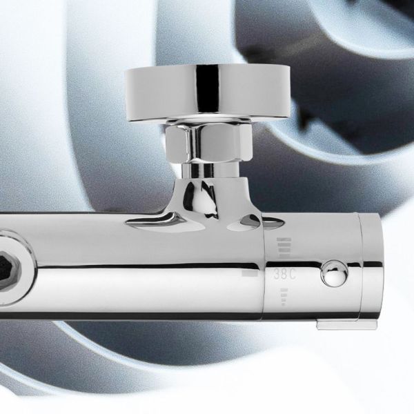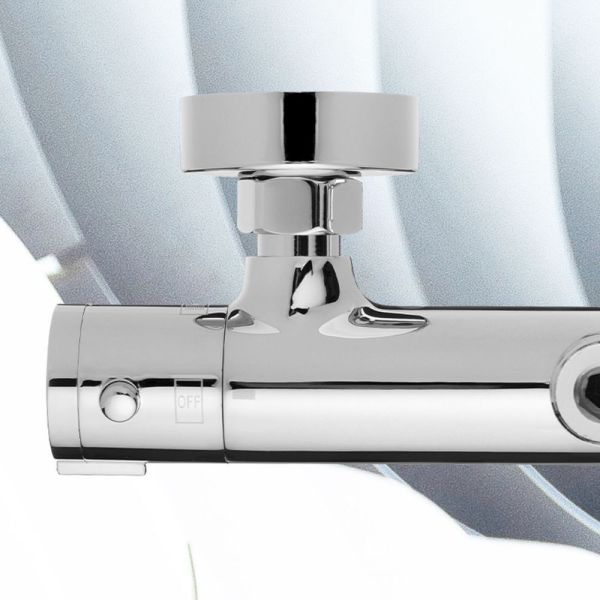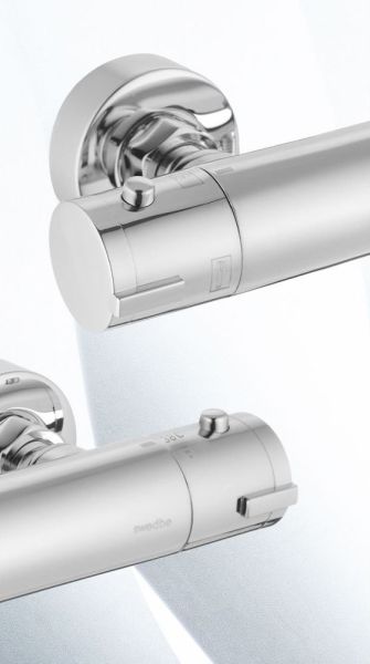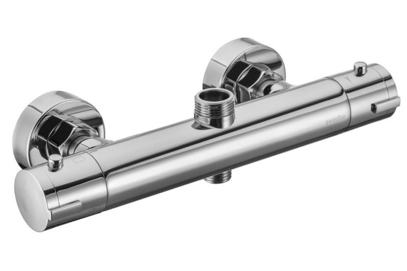 Термостат для душа Swedbe Hermes— надёжный смеситель от шведского бренда Swedbe. Оснащён «умным» картриджем. Благодаря обратным клапанам решается проблема «выдавливания» холодной воды горячей из-за разницы давления, когда температуру воды отрегулировать невозможно. Клапаны чётко разделяют холодную и горячую воду, исключая подмес. Это важно в тех домах, где есть сильная разница давления в стояках. В моделе предусмотрен ограничитель температуры, предустановленный на отметке 38 градусов, что считается идеальным значением для комфортного мытья. Можно не бояться обжечься при повороте рукоятки температуры, что актуально для семей с маленькими детьми.