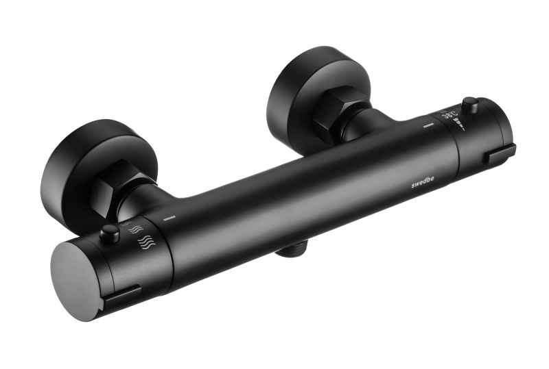 Термостат для душа Swedbe Mercury — надёжный смеситель от шведского бренда Swedbe. Оснащён «умным» картриджем. Благодаря обратным клапанам решается проблема «выдавливания» холодной воды горячей из-за разницы давления, когда температуру воды отрегулировать невозможно. Клапаны чётко разделяют холодную и горячую воду, исключая подмес. Это важно в тех домах, где есть сильная разница давления в стояках. В моделе предусмотрен ограничитель температуры, предустановленный на отметке 38 градусов, что считается идеальным значением для комфортного мытья. Можно не бояться обжечься при повороте рукоятки температуры, что актуально для семей с маленькими детьми.